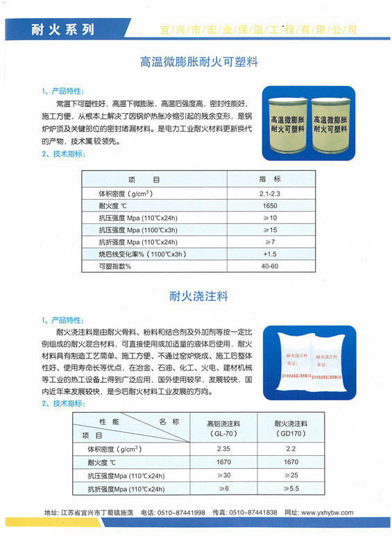 高溫微膨脹耐火可塑料、耐火澆注料